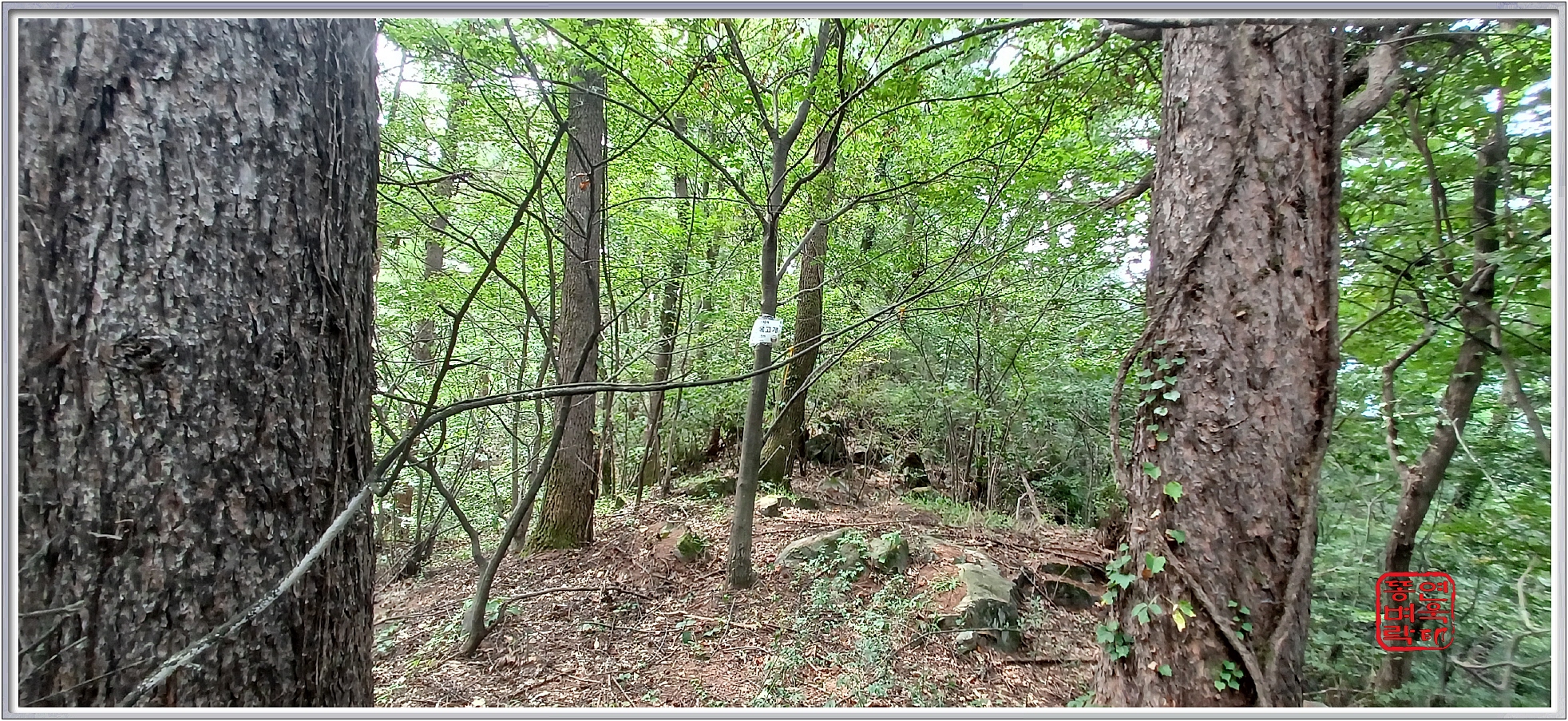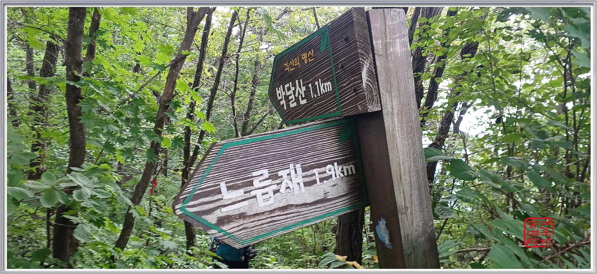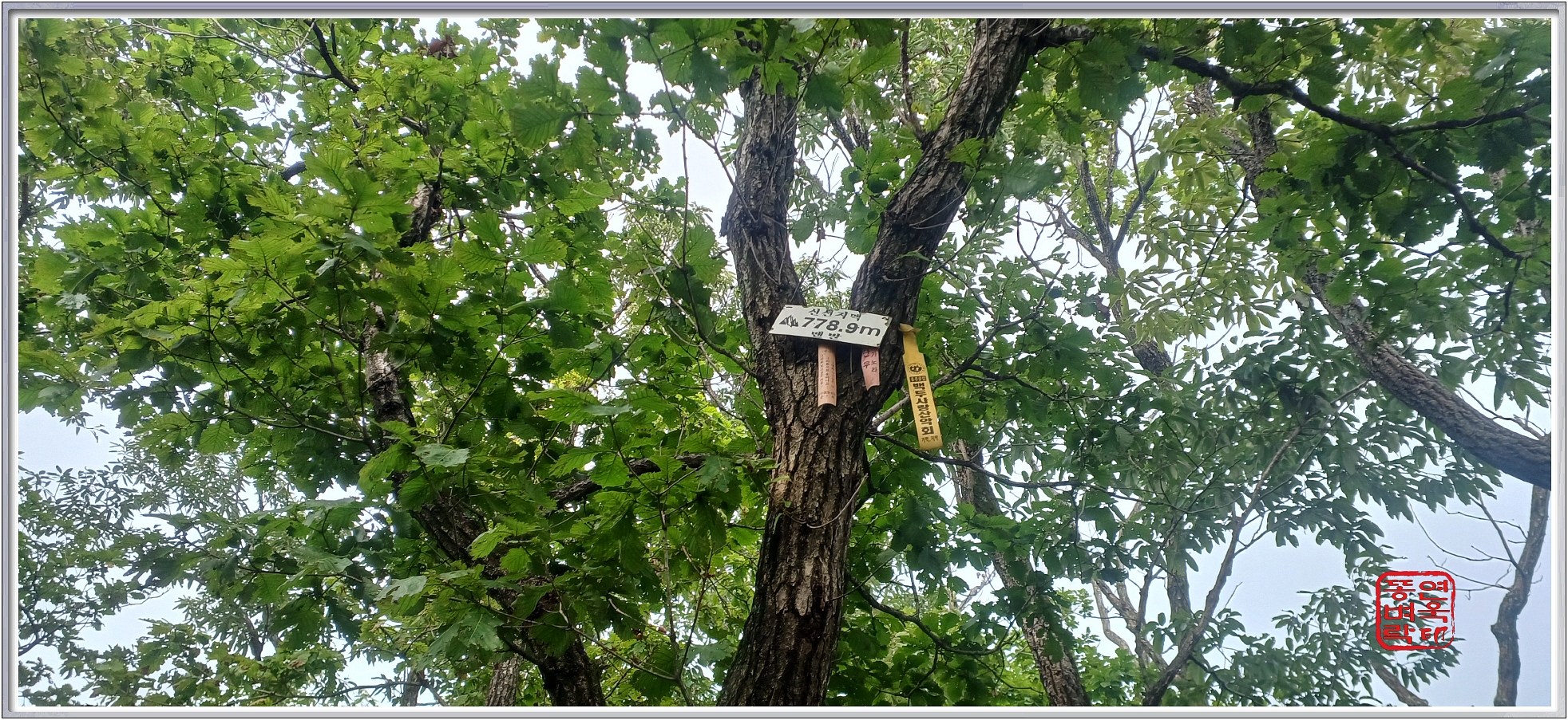 ↑ 한참을 올라 도착한 박달산. 조망 하나 없는 산이다.