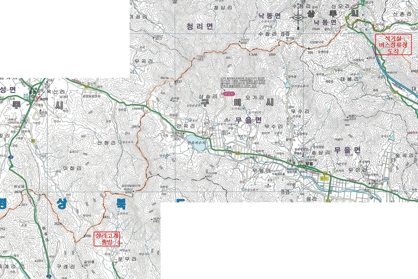 ↑ 기양지맥 상리고개~석거실 버스정류장 지도