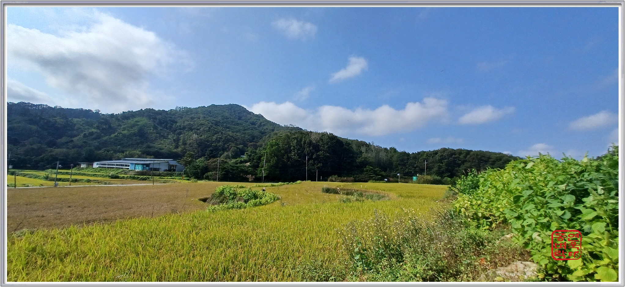 ↑논두렁을 따라가며 기양산을 향해 출발한다.