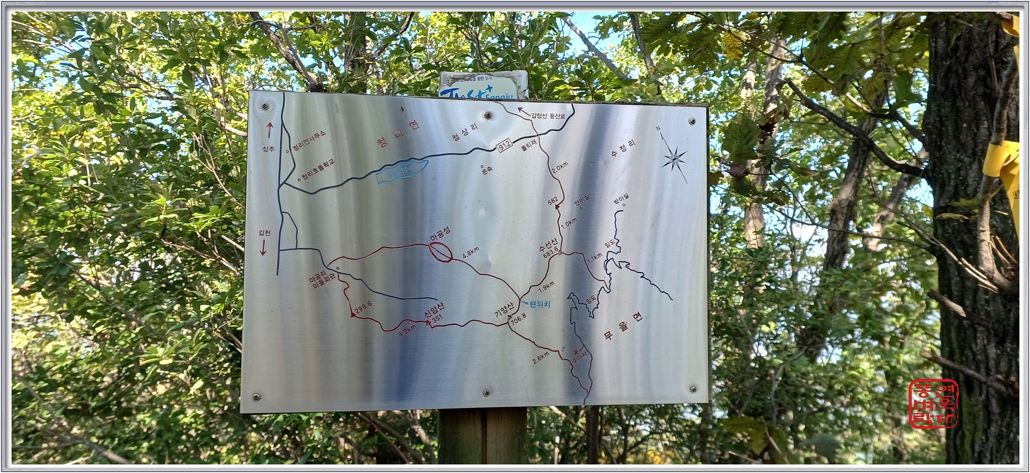 ↑ 수선산 정상의 이정표