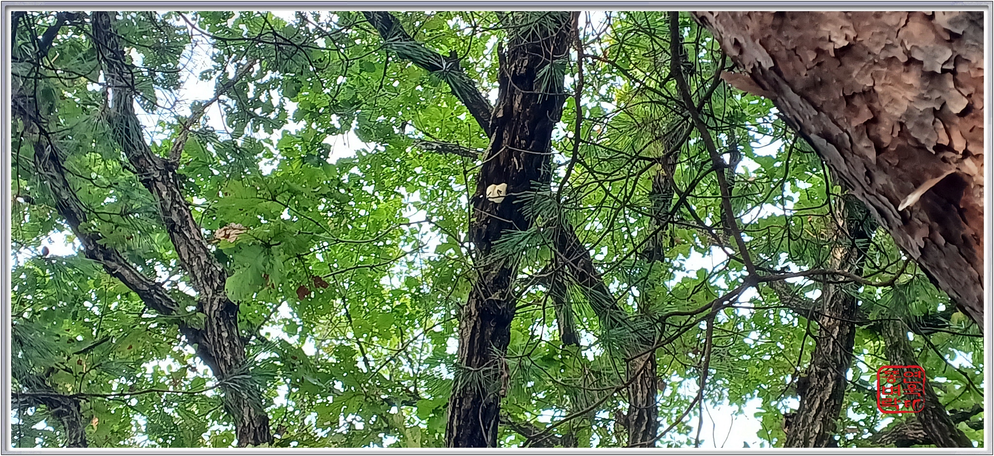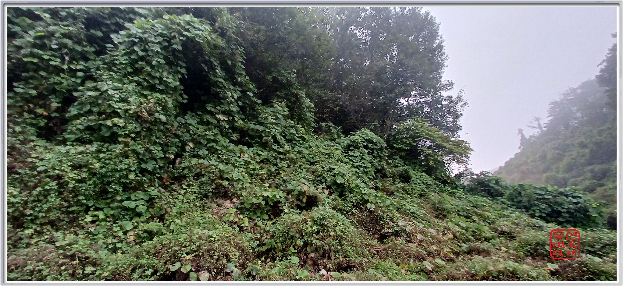 나무에 가려 조망 하나 없는 기양산인데