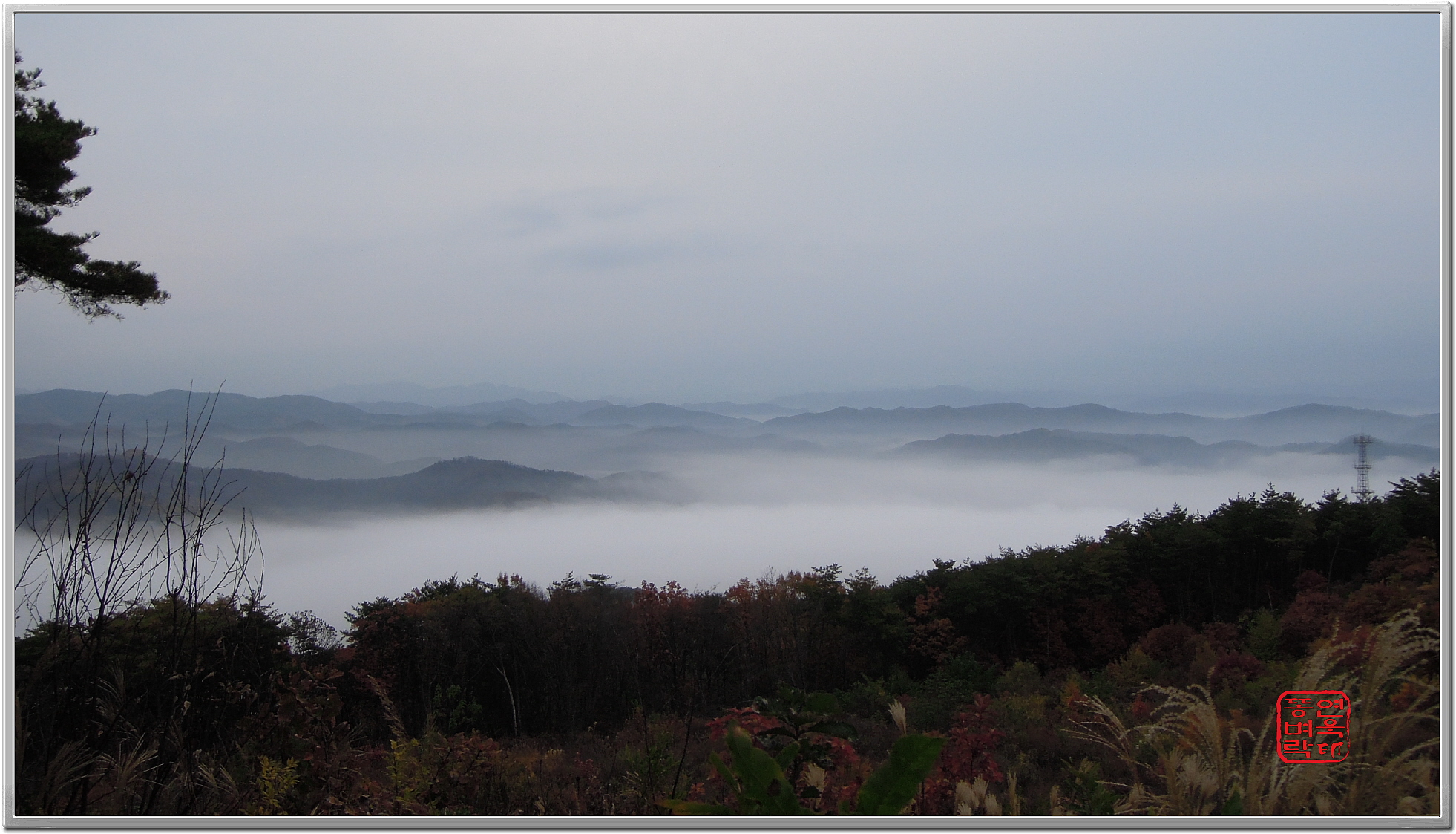 ↑ 운해 사이로 솟아 있는 비룡산
