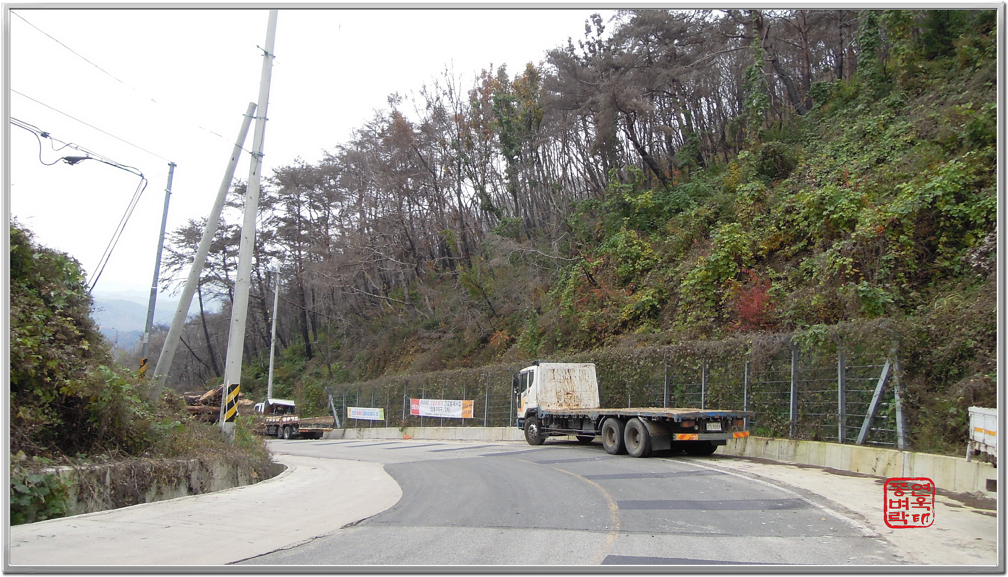 ↑ 후평리고개는 산불 정리 하는 차량들이 잔뜩 있다.