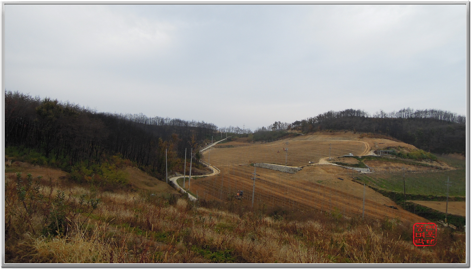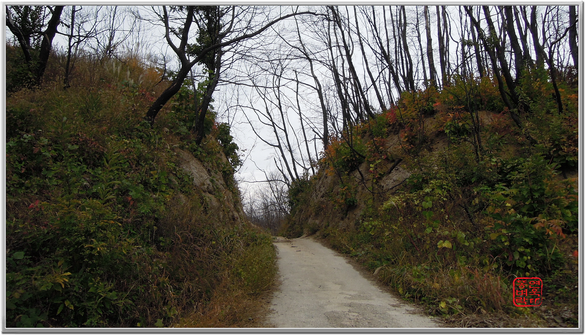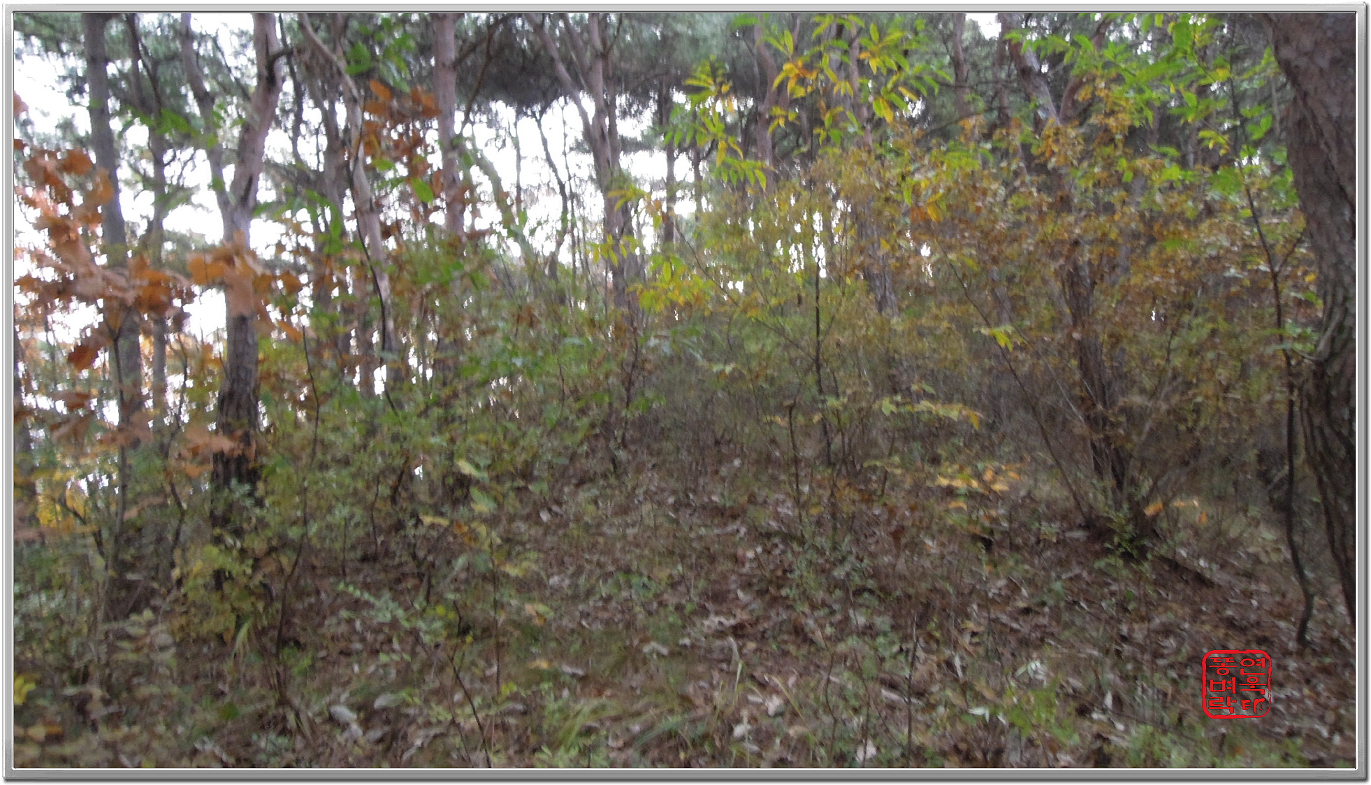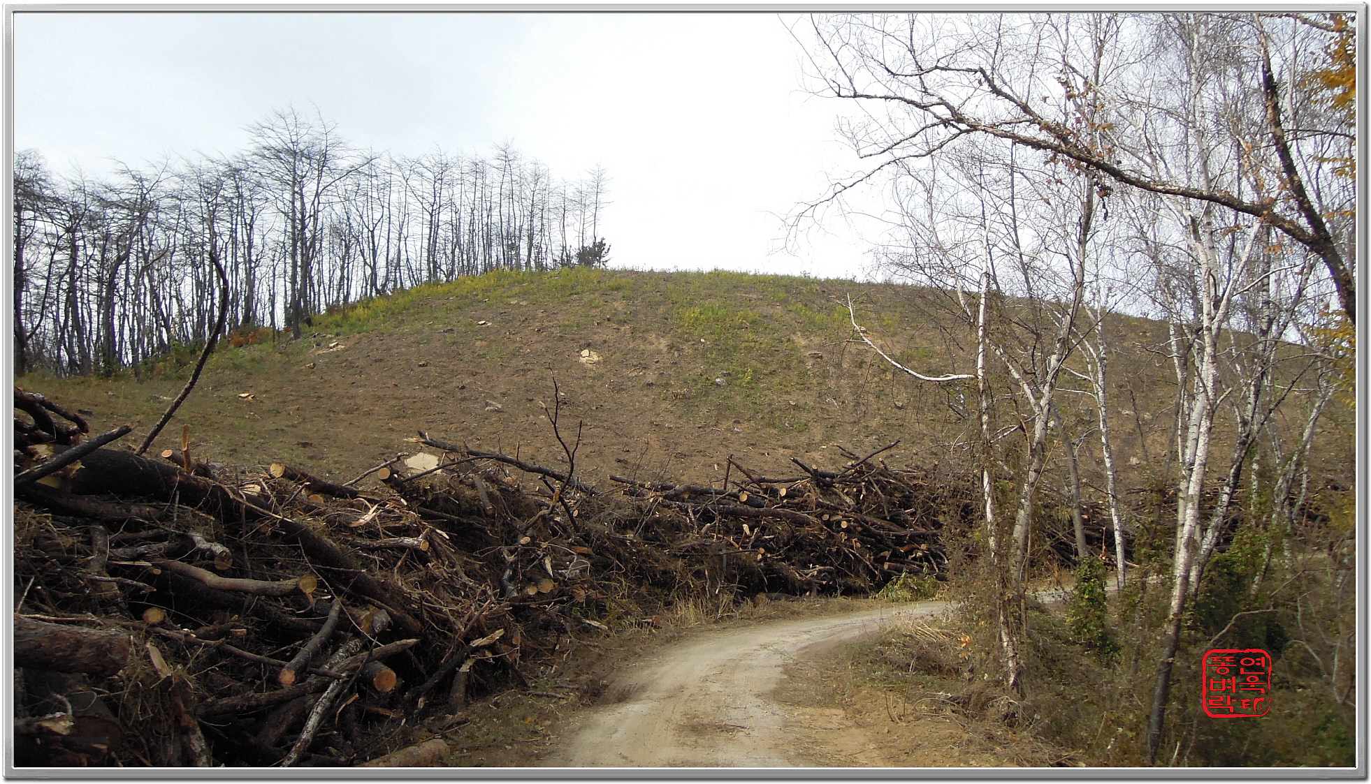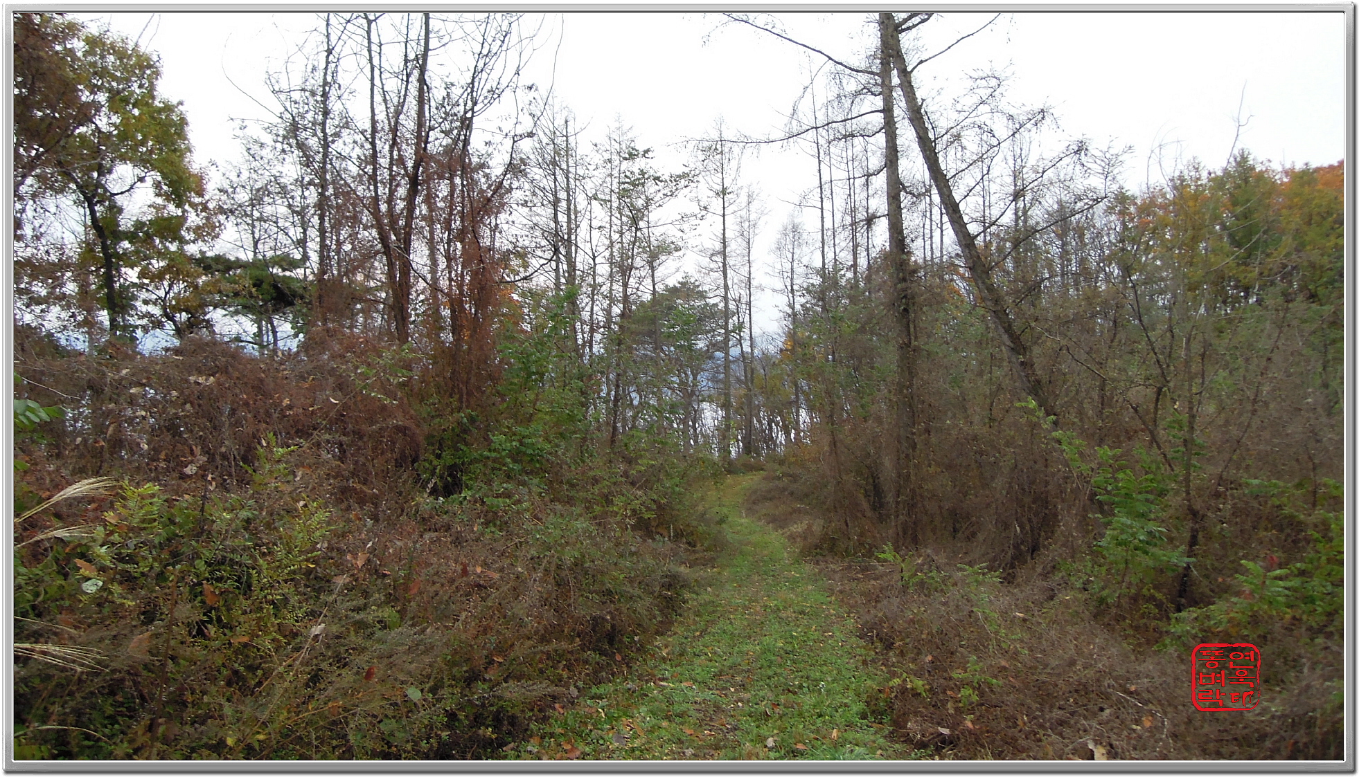 ↑ 잡목도 죄다 가시나무라.. 뚫기가 너무 어려워 탈출... 그냥 임도로 간다.