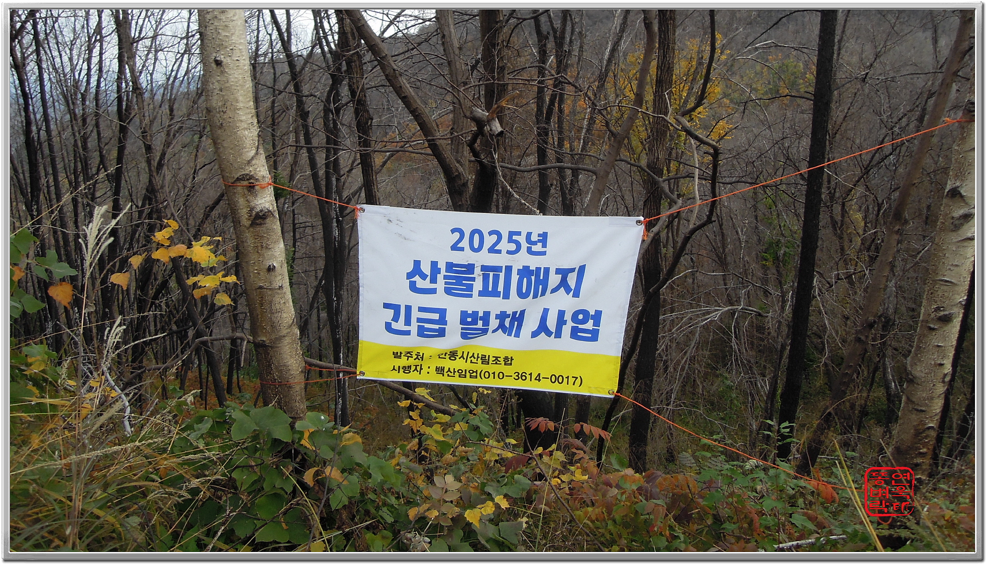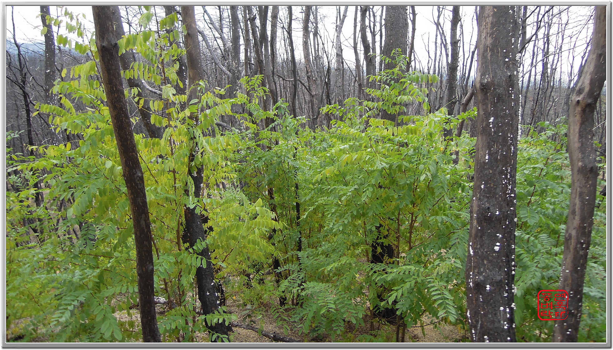 산불지역에 아카시아 나무가 올라와서