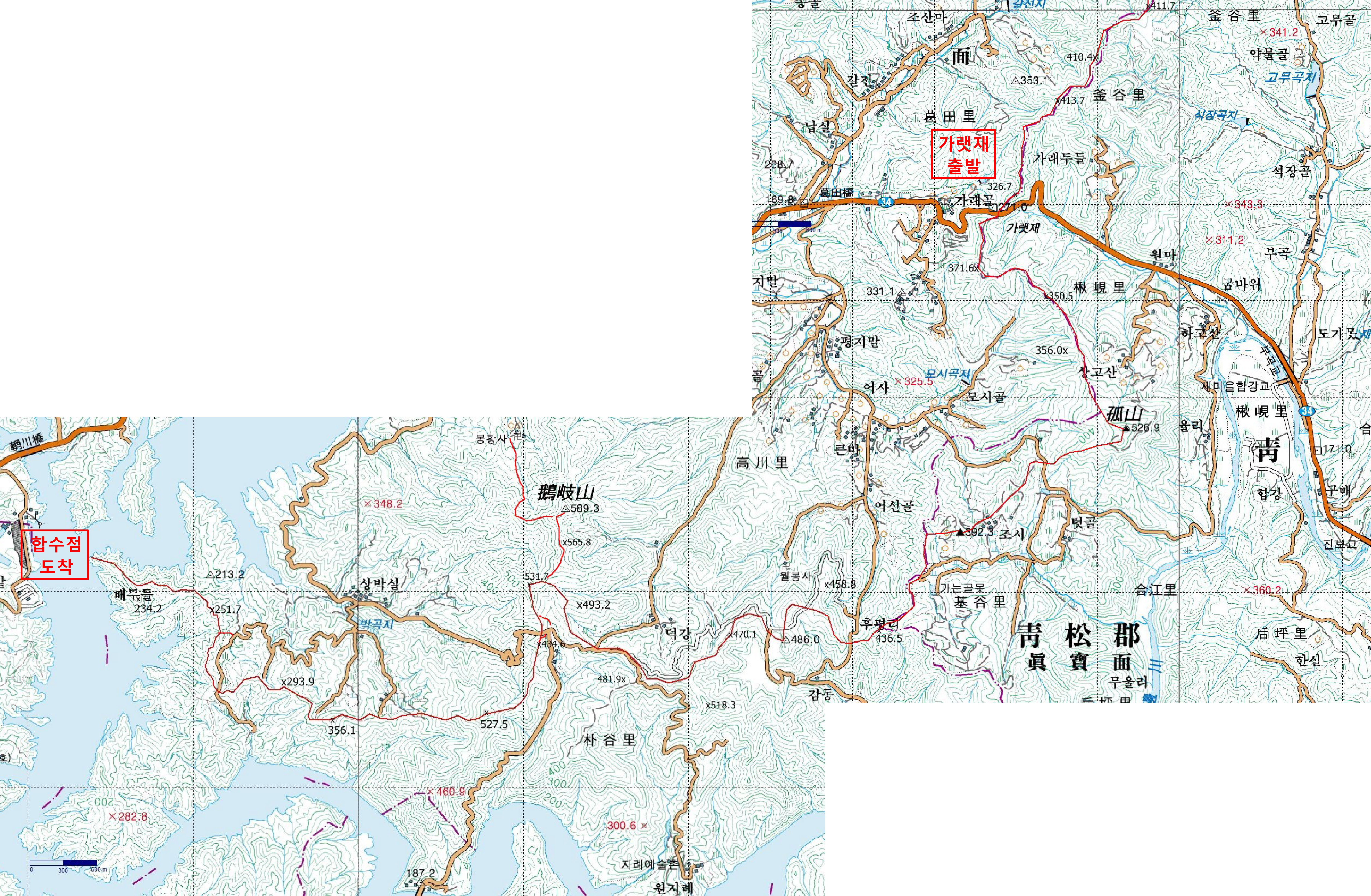 영등지맥 가랫재~합수점 구간도