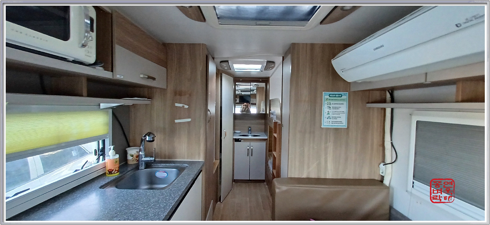 ↑ 내부... 콘도형이라 싱크대와 냄비, 그릇, 컵, 젓가락등이 있다.