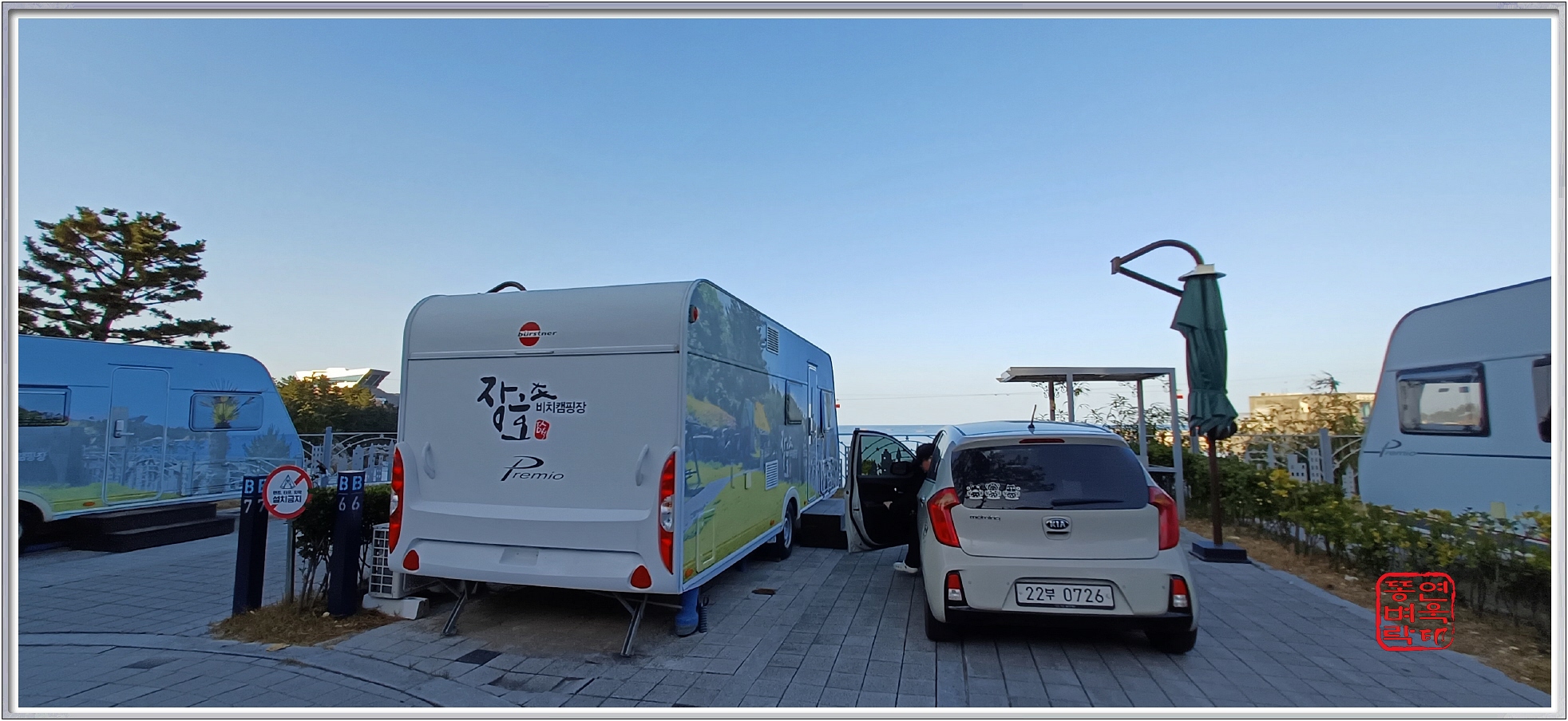 ↑ 카라반 옆에 주차를 한다. 참고로 B7은 카라반 옆에 주차가 불가하여 그 앞에 세워야 한다.