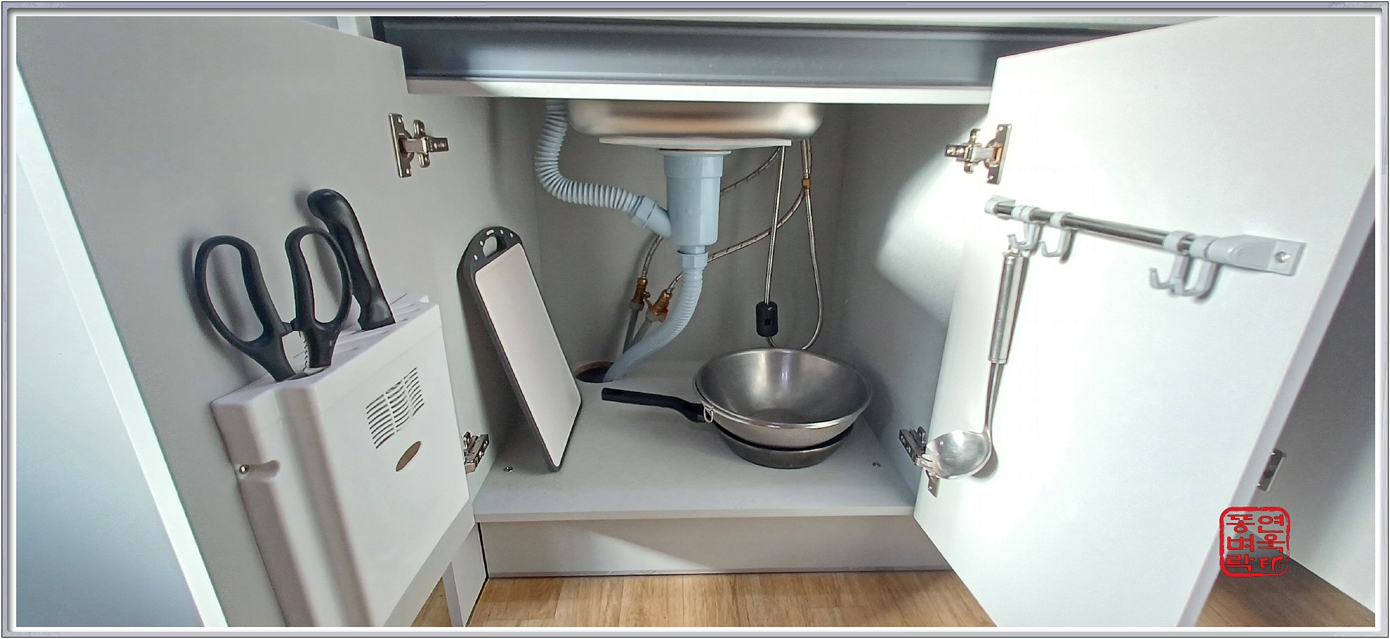 ↑ 씽크대 좌측 위에 있는 쓰레기통은 음식물쓰레기통이다.