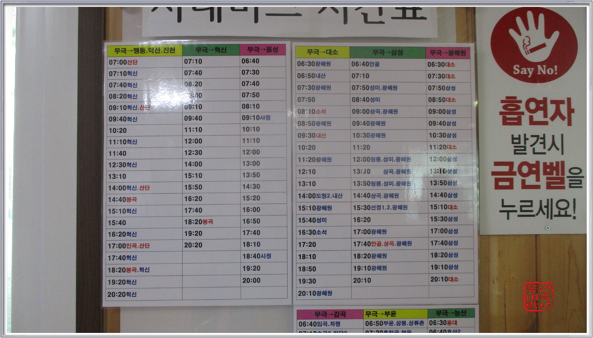 ↑ 시내버스 시간표. 위에서 찍은 사진과 겹친다.